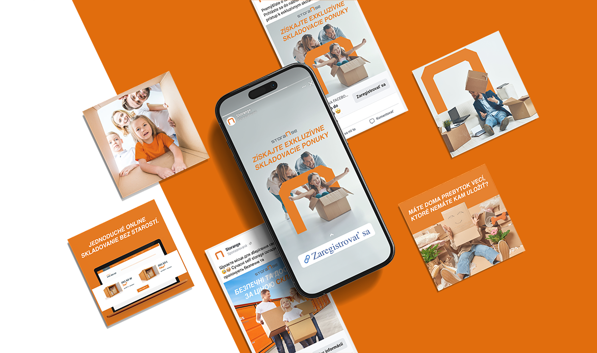 Správa sociálnych sietí pre Storange, samoobslužné self-storage sklady s nepretržitým prístupom 24/7.